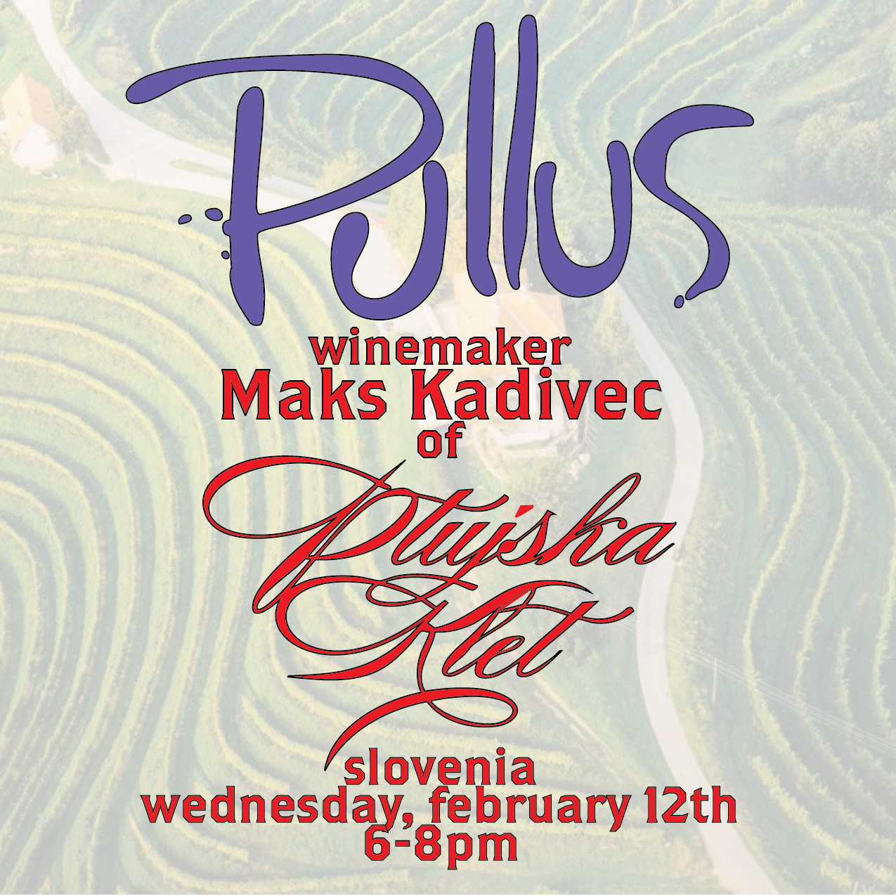 Digress’s favorite wine, now featuring the winemaker! Join us on Wednesday, February 12th from 6-8pm to meet and taste with Pullus winemaker Maks Kadivec, in town all the way from Slovenia!