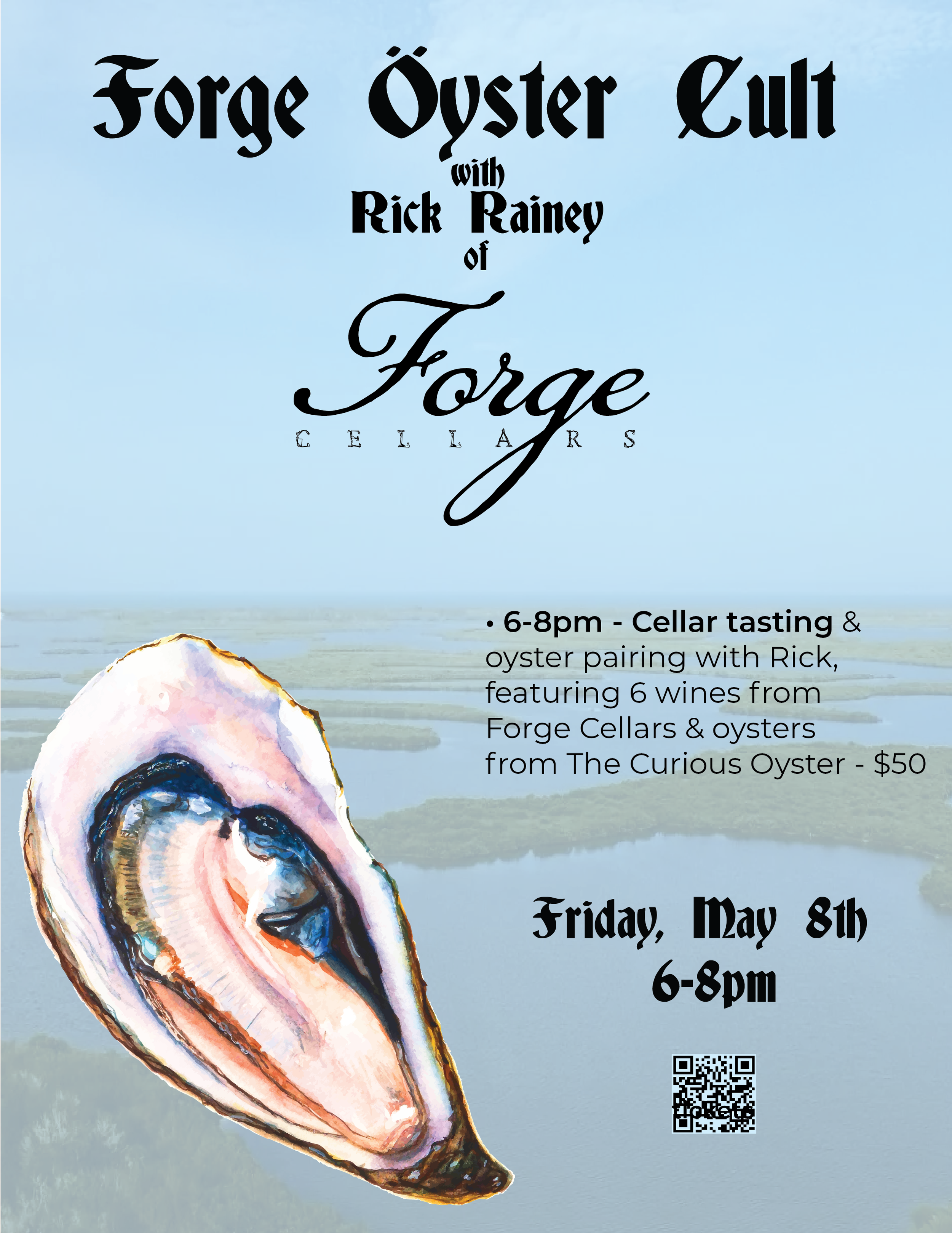 Join us in the cellar with our homie Rick Rainey, owner of Forge Cellars, and a whole lot of Riesling and oysters! Our buddy Mike from The Curious Oyster will be providing all of the briny delights, and Rick will be giving everyone a master class in oyster pairing, the wonders of the Finger Lakes, and why Riesling is one of the most exciting grapes on the planet!
